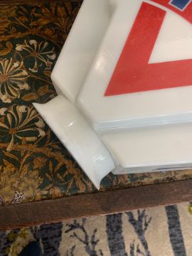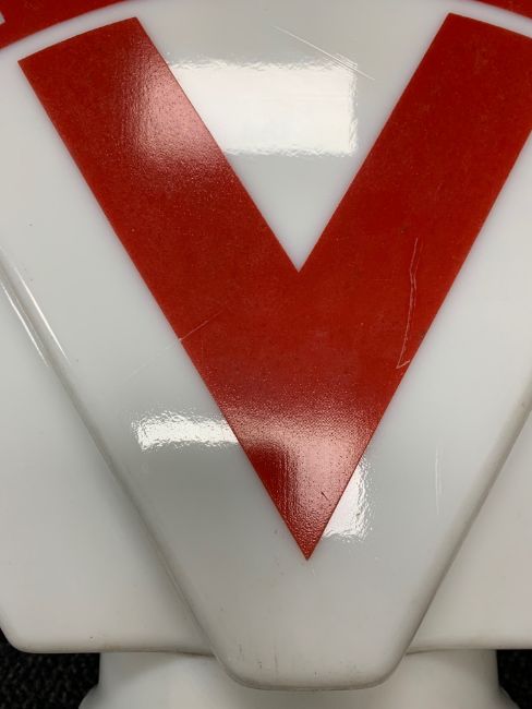 Condition: In overall good condition, some light wear to applied lettering and symbol, surface dirt throughout, one side with 2 scratches to V of sign, multiple chips to entire rim - the largest individual chip approx 2cm wide. Numbered to neck apparently reding '4.51' makers mark not visible.