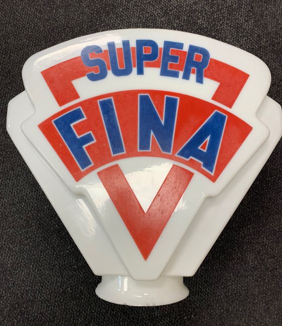 A vintage Super Fina glass petrol pump globe,