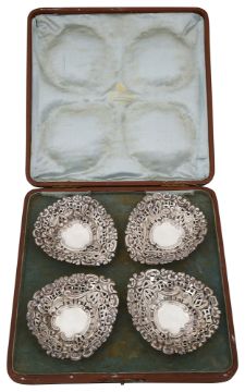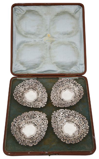 A cased set of four Edwardian silver bonbon dishes