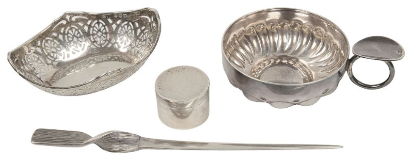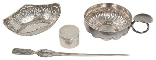 An early 20th century French .935 silver tasse de vin, a paper knife and other silver items