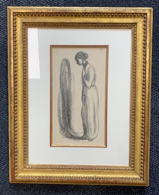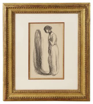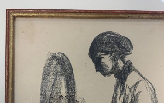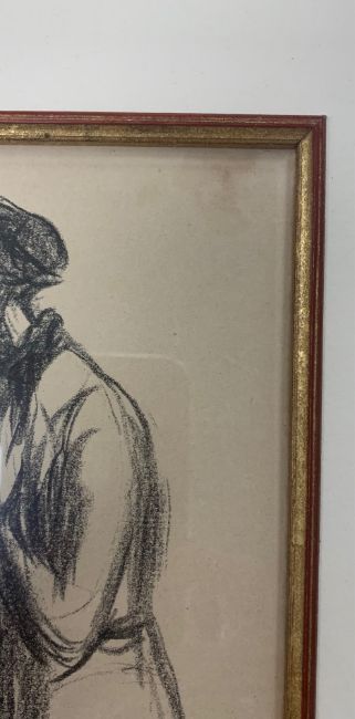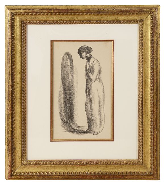 After Edvard Munch (Norwegian, 1863 - 1944)'Melancholy' (Den sinnsyke), lithograph, framed and mounted,overall 47cm x 37.5cm, within mount 26.3cm x 14.5cm Condition: Unexamined out of frame - believed later reproduction of the early 20th century original. Some staining visible particularly to corners. Some foxing type spots. Small tear mark to left margin approximately 0.5cm wide. Vertical scratch to lower right corner approximately 1cm long.