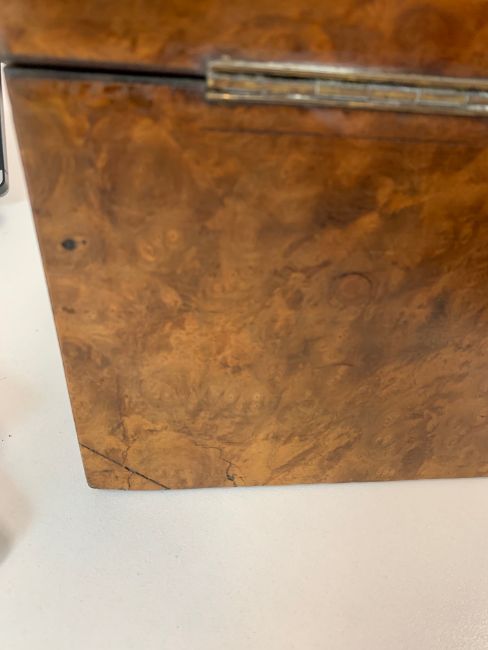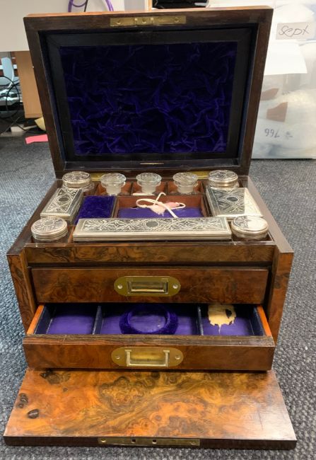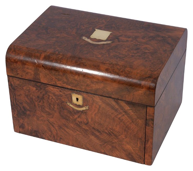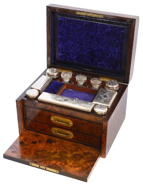A late 19th century burr walnut vanity box by Mountfort, New Street, Birmingham,
