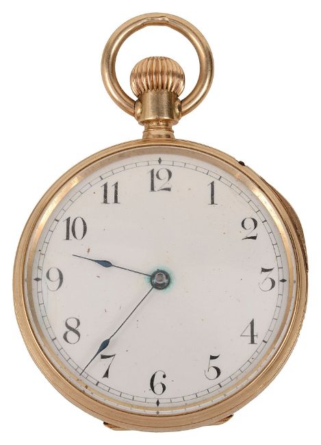 An American Waltham 10C gold open faced keyless pocket watch c.1900