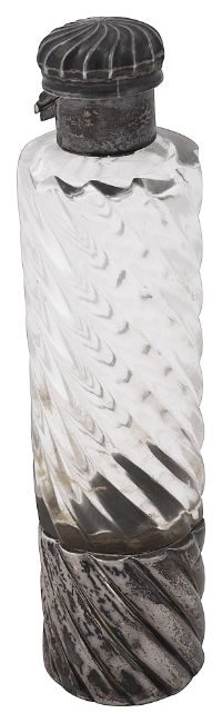 the cylindrical clear glass wrythen body fitted with a detachable cup, mount with hinged wrythen fluted mushroom cap with bayonet action