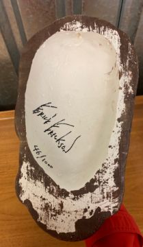 signed to back by 'Erick Erikson', finished in gold paint, numbered 46/1000, together with a further plaster face mask of Bowie,