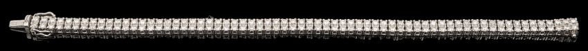 A diamond-set flexible link line braceleteach link set with two brilliant-cut diamonds to the concealed clasp stamped '750'length 18cms, 16gCondition: Overall condition good/ very good.Approximate diamond total spread weight 3.20 - 3.80 cts. Good colour and clarity, some with medium fluorescence, a few with strong fluorescence.