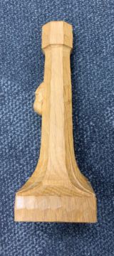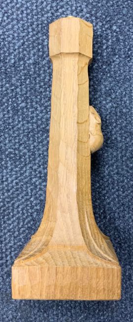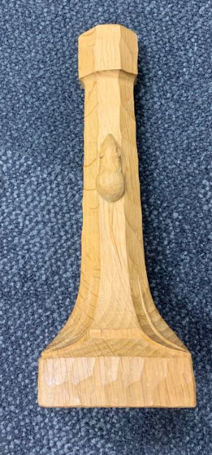 with octagonal column bearing carved mouse, over square shaped base carved with leaf motif,