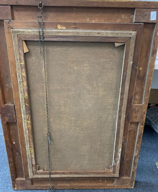Condition: Painting would benefit from cleaning, multiple losses and splits to frame - picture loose within frame - surface scratches visible close to signature - craqueleur visible throughout