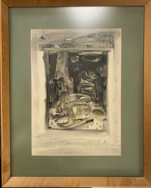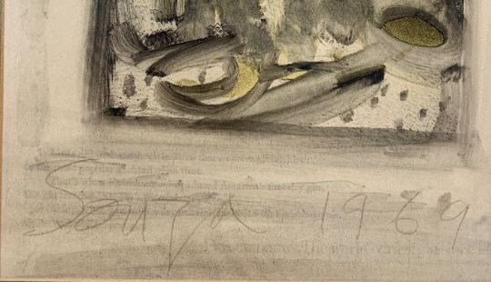 Untitled 'Still Life', 1969, mixed media, chemical drawing on paper, signed and dated to upper margin 'Souza 1969' and further signed in ink to lower margin 'Souza, 1969', framed and mounted,