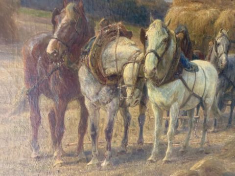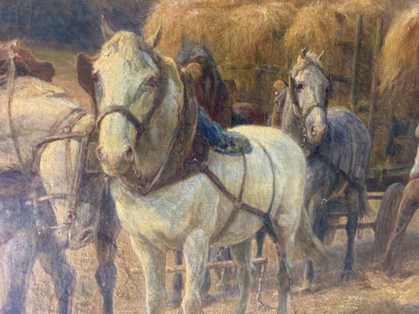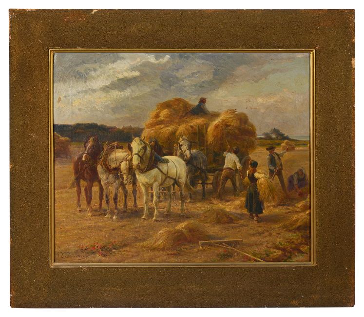 'The Hay Gatherers', oil on canvas, signed to lower left, framed,