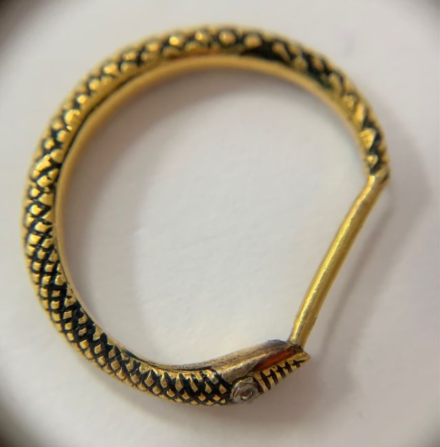A Georgian yellow gold and black enamel ouroboros jewel,