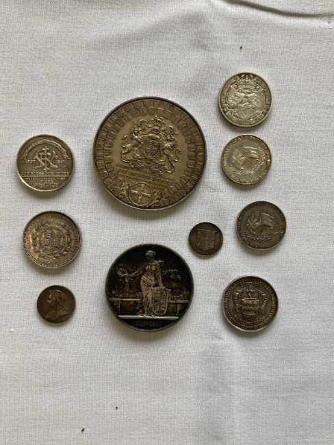 St Luke Manningham medal by Bowcher issued by Spink, a City and Borough of Peterborough token, 2 x Argentina, Buenos Aires medals by J.D., veiled crowned head left rev/ flags of Argentina and Great Britain, etc., (10)