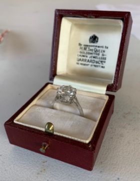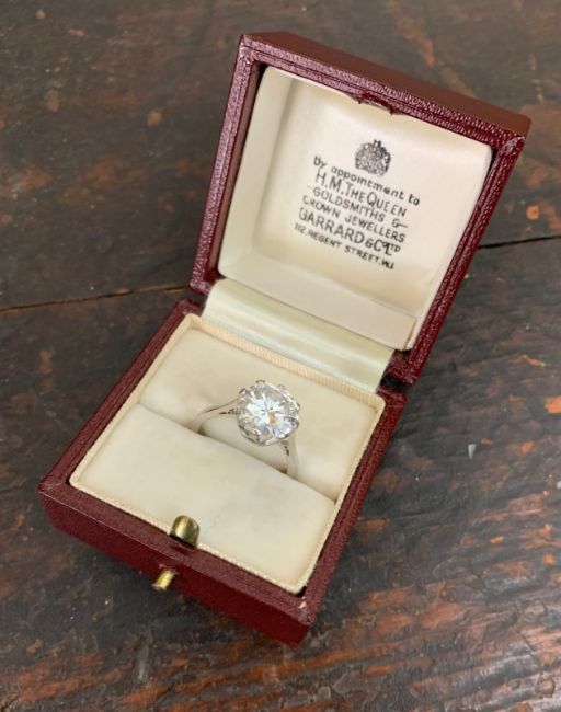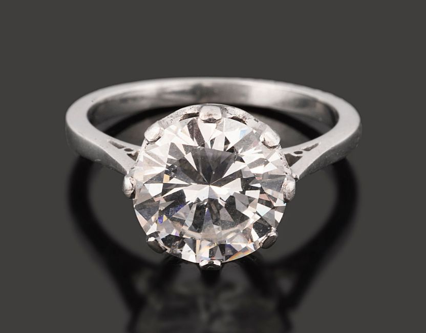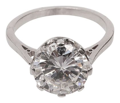 the modified brilliant-cut diamond weighing 3.39cts to the coronet setting and plain tapering shank, with case for Garrard and Co.,