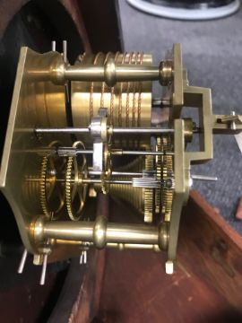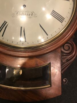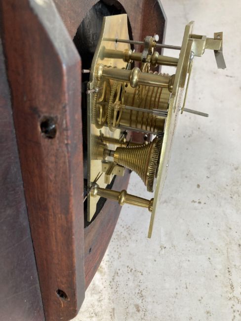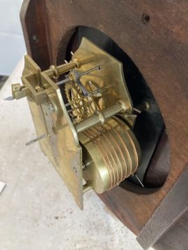Condition: Winds, ticks and runs however no guarantee can be offered as to the full working order. Dial is is clean but possibly been retouched. Case has been repolished, in good tidy restored condition. Section of replaced veneer top right of lenticle, see extra image.Pendulum, winding key and case keys present. There are two pegs to each side which when removed allow the face and workings to be lifted out.