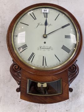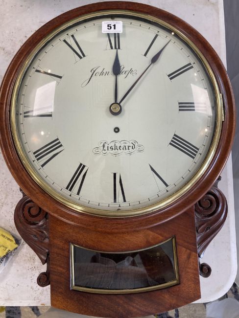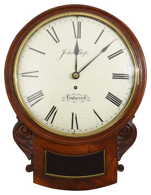 signed John Sleepe, Liskeard, single fusee movement with anchor escapement, the case with glazed lenticle and acanthus carved ears