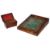 first with fitted interior and blue tooled velvet and gilt tooled Morocco writing surface, brass shield shaped escutcheon and reserve, second two division interior with lids, on compressed ball feet, (2)