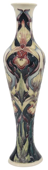 of slender form, painted tube lined decoration, cream coloured ground, limited edition number 106/200, signed 'Rachel Bishop' to base, artist monogram and impressed Moorcroft marks,