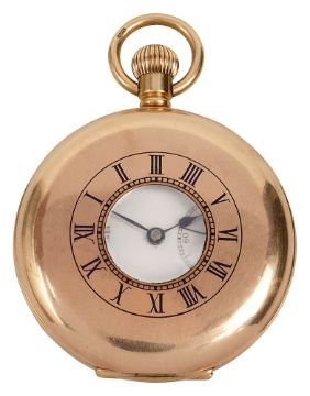 A 9ct gold cased Benson half hunter keyless pocket watch