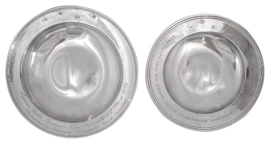 Two modern presentation prize silver armada dishes