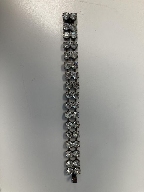 Condition: Mostly good condition. Some light rubbing to gilt bracelet and slight buckle to mid panel. other gilt brooch with rubbing and worn through areas. Missing stone is presetn in the double row bracelet