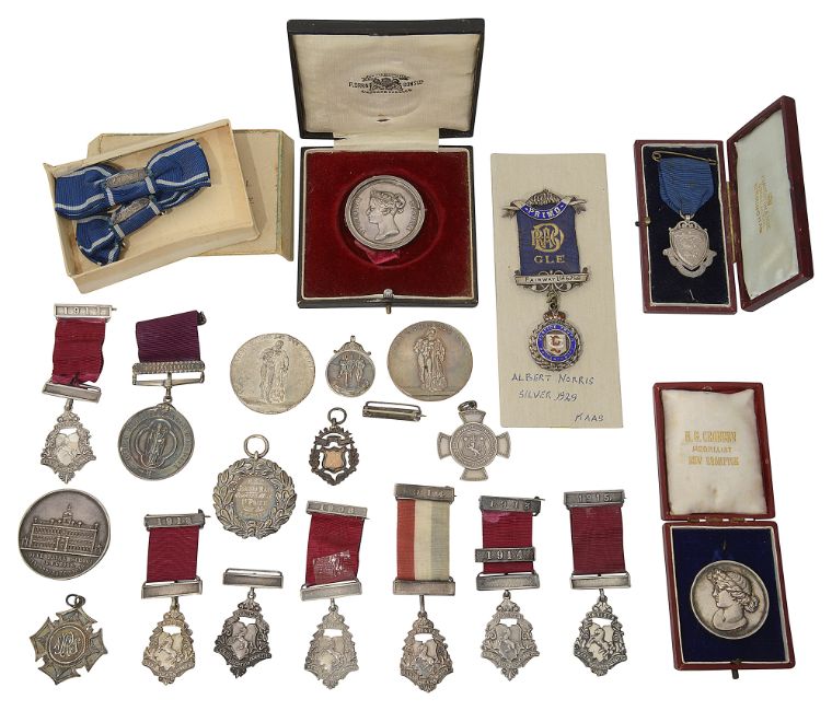 A collection of Victorian and later silver and other prize medals and medallions