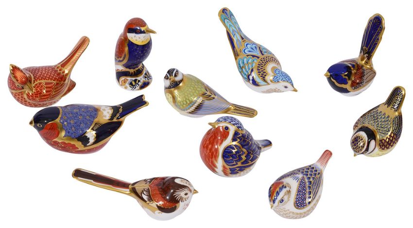 A collection of ten Royal Crown Derby paperweights in the form of birds