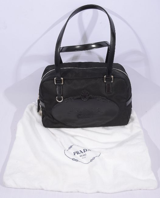 nylon body with leather handles and trim, top handle zip closure with silver toned padlock, interior with Prada logo lining and large zip pocket together with Prada dust bag and Authenticity Card from Florence dated August 2007,