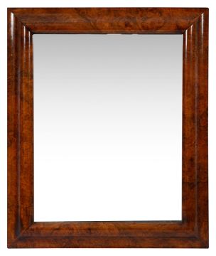 A burr walnut cushion shaped hanging wall mirror,