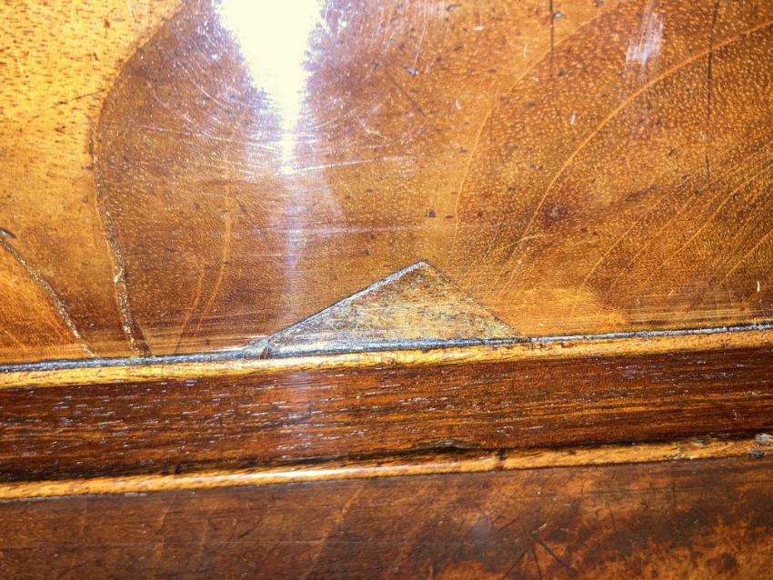 the moulded top with a fall front revealing a fitted interior, below are three graduated long drawers, on bracket feet, height 92cm, width 93.5cm, depth 54cm,.Condition:In good condition overall, colour good. There is filler to the backs of the drawer handles on the secretaire. The bracket feet are later replacements
