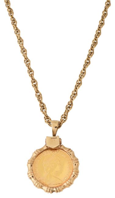the half sovereign dated 1982 in 9ct mount with a 9ct double link chain