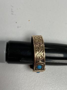 A late Victorian 12ct gold and turquoise set buckle ring