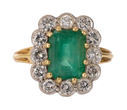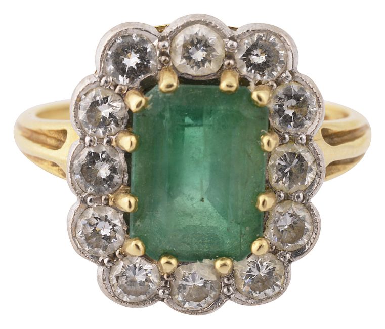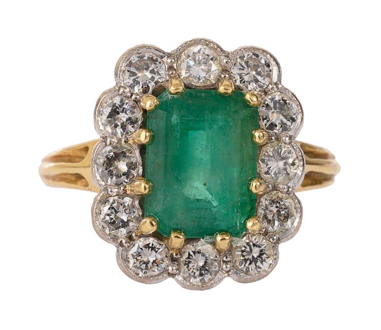 An emerald and diamond-set cluster ring