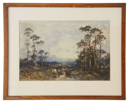 'Moorland landscape', with figures, horses and a cart on a track, watercolour, signed bottom left W. Manners, mounted, framed