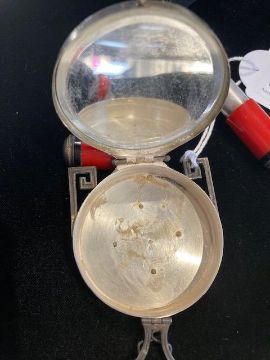 Condition:Fair condiiton. Four marcasite chips absent. Some surface wear, snaps when closed.