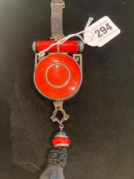 stamped Depose France and bearing maker's mark, with black silk tassel, suspended from a black silk wristlet