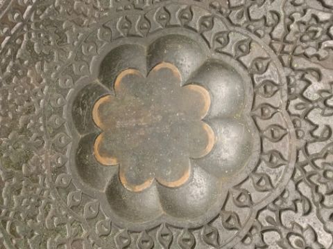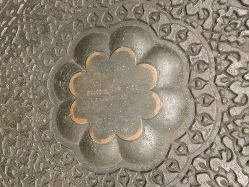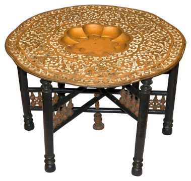 An Indian brass tray on stand occasional table