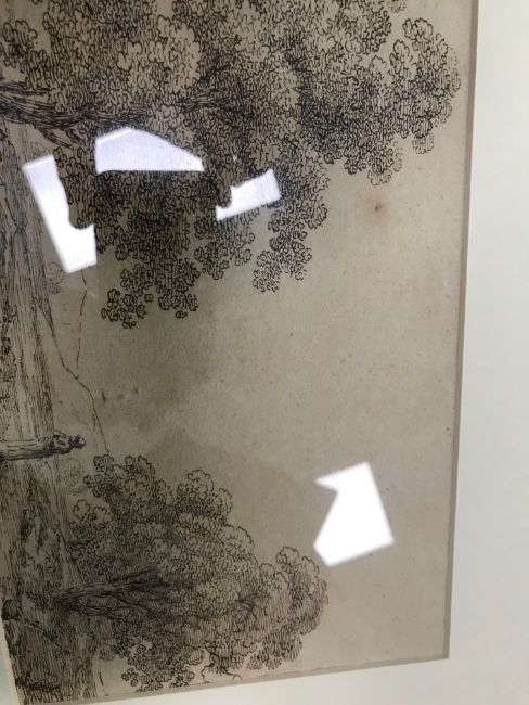 Four landscape studies in ink, 1795/ 1796, each dated in Italian to lower edge, framed and mounted, one with a series of profile portrait sketches to verso, bearing 20th century labels verso inscribed (Thomas) 'Monro school, pen + ink, Landscape Studies - 1795 - 1796, Provenance - ex Bunbury Collection - Drawings from collection of Walter Fawkes', (4)