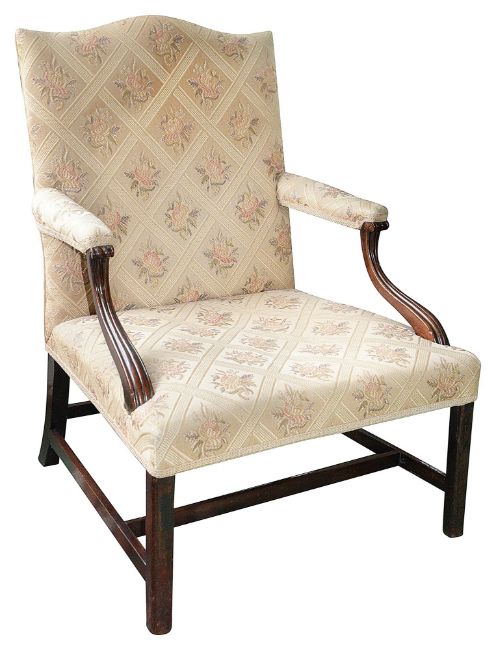 A George III mahogany and upholstered 'Gainsborough' armchair