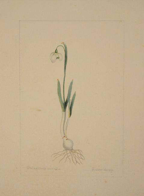 'Galanthus Nivalis - Snowdrop', watercolour and pencil