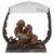 the two reading girls on a marble base and enclosed by leafy uprights with a frosted glass shade above, rear with a Made in Paris roundel, other lettering on roundel indistinct