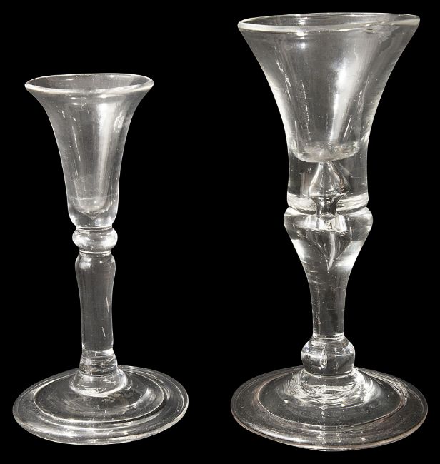 Two mid 18th century gin glasses c.1730