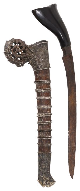 A late 19th century Malayan silver hilted dagger (Bade Bade)