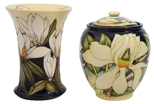 Two pieces of Moorcroft including; a 'Mississippi Magnolia' vase and a 'Paradise Flower' ginger jar,