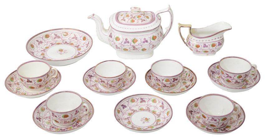 A Regency pink lustre Staffordshire 'strawberry' pattern part tea service