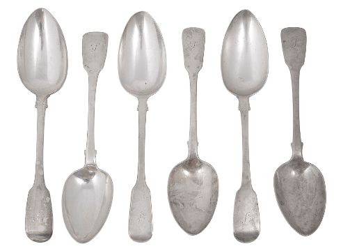 A set of six George IV silver fiddle pattern tablespoons