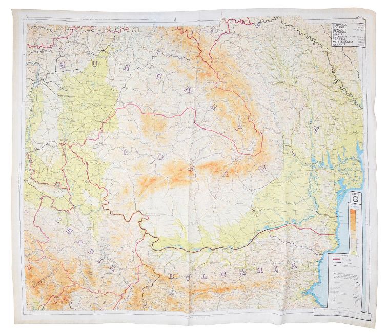 Sheet F and Sheet G, Central, Eastern and Southern Europe, September 1943,.approximately 90cm x 78cm,.Condition:Slight fraying to edges - folded,
