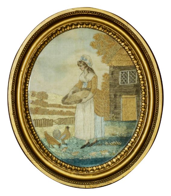 A Regency silk-work embroidered oval picture