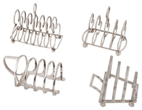 Four Edwardian and later silver toast racks