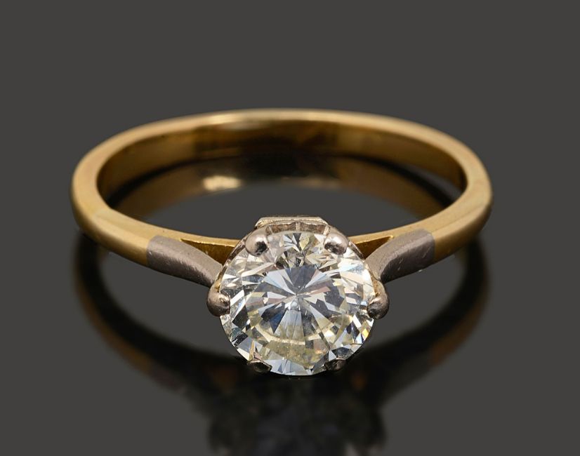 A diamond single stone ring the brilliant-cut diamond estimated to weigh 1.20cts, coronet-set to the plain tapering shankring size P, 3.2g