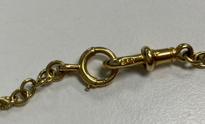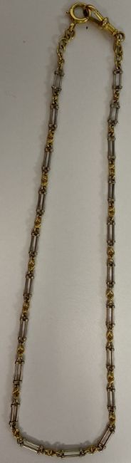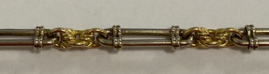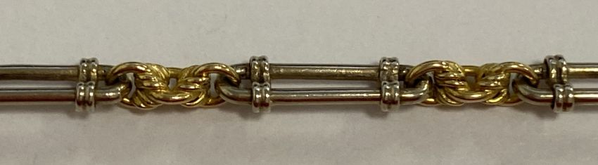 An 18ct two coloured Edwardian fancy link chainclasp stamped '18c' Approx.